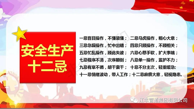 2020年6月是全國第十九個“安全生產月”,為深入學習貫徹習近平總書記關于安全生產系列重要指示精神,提高全員安全文化素質,江豐管道集團有限公司積極開展以“消除事故隱患,筑牢安全防線”為主題的“安全生產月”活動。